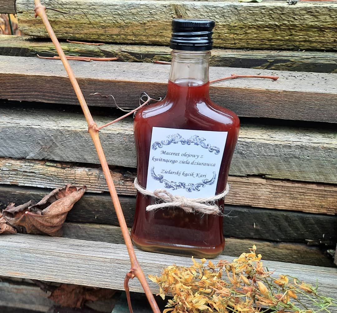 W medycynie ludowej olej z dziurawca stosowano na bóle mięśni oraz nerwobóle w postaci masaży obolałego krzyża, całych pleców, nóg i rąk. Maceraty olejowe stosować można miejscowo w postaci wcierek w bolące miejsce.
