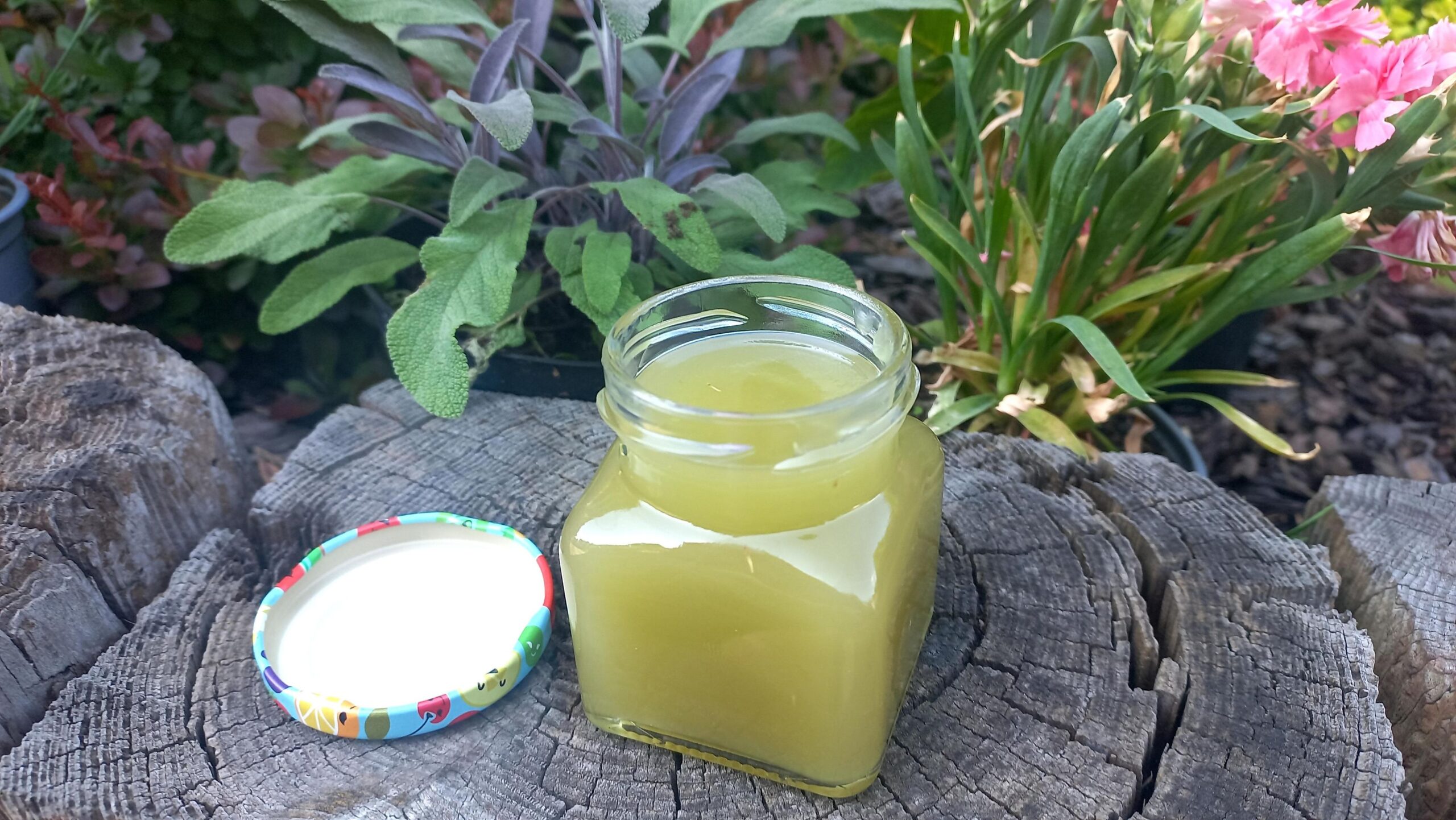 Mazidło wrotyczowe na smalcu gęsim stworzone wedle tradycyjnej receptury, metodą maceracji na ciepło w kąpieli wodnej.