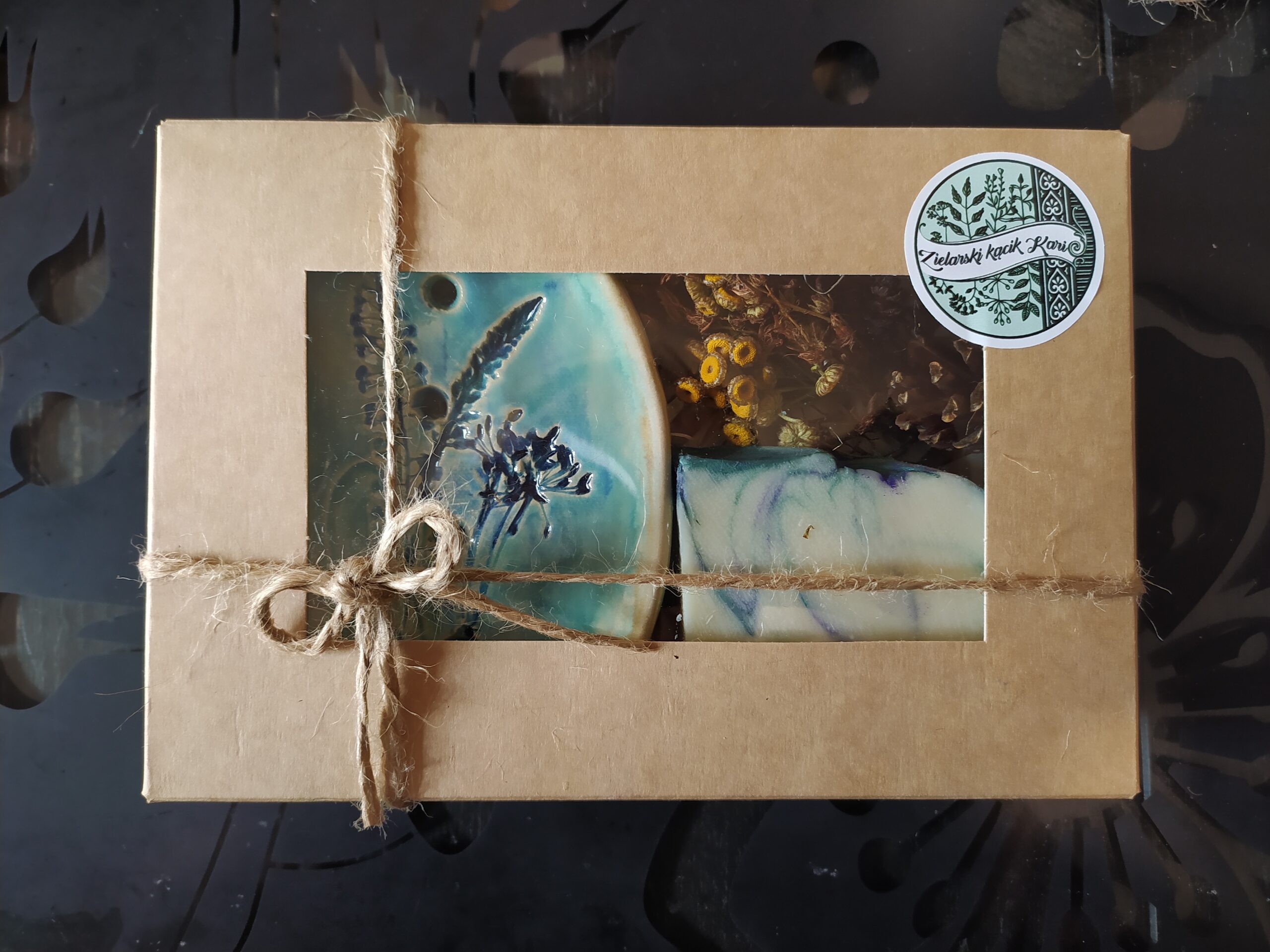 Zestaw prezentowy “Pięknie i zdrowo ziołowo” w eleganckim pudełku zawiera dwa ręcznie wykonane inspirowane ziołami produkty.